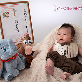 スタジオでは立派な命名書とパパママからのファーストトイをご持参下さいました